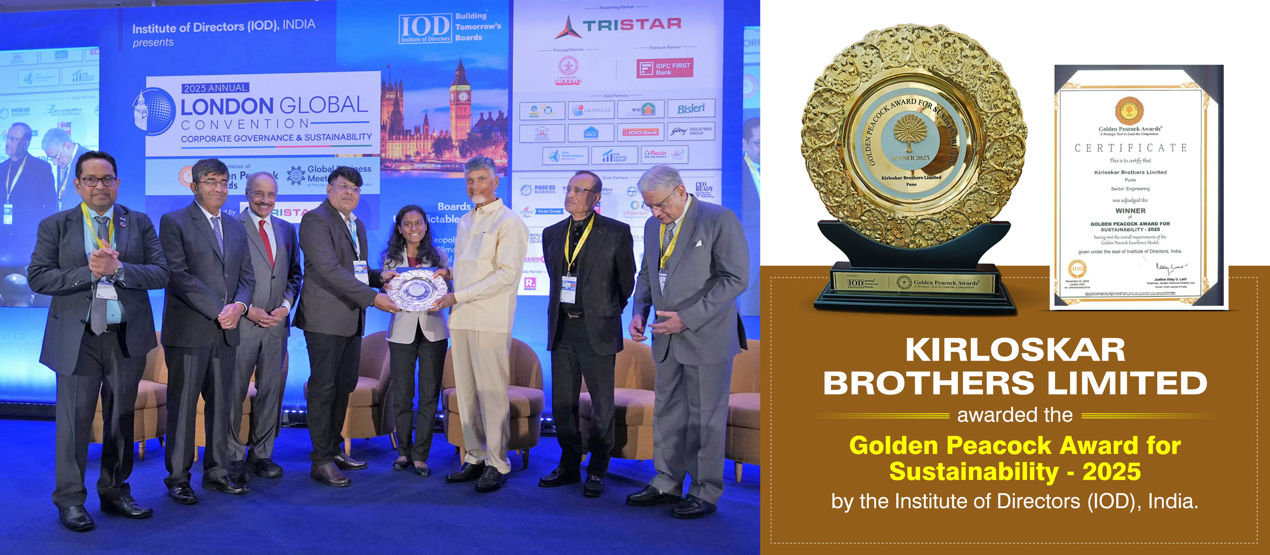 Kirloskar Brothers Limited (KBL) has been honoured with the Golden Peacock Award for Sustainability by the Institute of Directors (IOD). The award was conferred by Shri Chandrababu Naidu, Hon’ble Chief Minister of Andhra Pradesh...